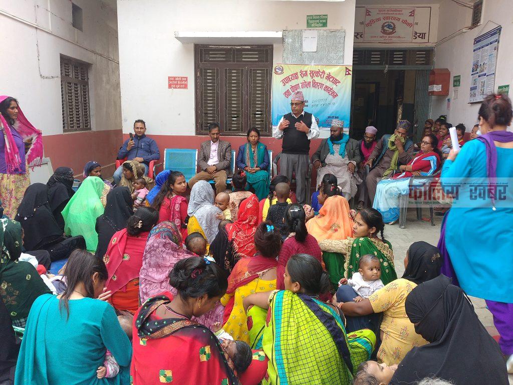 हेरचाहमा सधै सचेत र सावधान हुनु पर्छ,उनले थपे,होईन भन्ने सानो गल्ति र असावधानीले पनि शिशुको शारिरीक र मानसिक अवस्थामा प्रतिकुल असर पुर्याउन सक्छ । पोषणमा कमि भयो भने बच्चाको शारिरीक विकास अवरुद्ध भई होचो पुड्को हुने अवस्था हुन सक्छ । असावधीले कुनै घटना दुर्घना भयो भने अपाँग अस्वस्त हुने अवस्था आउन सक्छ । यि सबै कुरामा सुत्केरी महिलालाई सावधान रहन समेत उनले आग्रह गरेका थिए । सुत्केरी पोषण किटमा पोषणयुतm खाद्य पदार्थ (घिउँ,अण्डा लगायतका खानेकुरा समावेश गरिएको थियो । उनले सुत्केरी महिलाहरुलाई शिशुमा छोरा र छोरी विच बिभेद पनि नगर्न आग्रह गर्दै छोरी जन्मेकी भए जन्मदर्ता गराएर खाता खोली विवरण पेश गरेमा छोरीको नाममा २५ हजार नगर रकम समेत जम्मा गरिदिने गाउपालिकाले निर्णय गरेको जानकारी गराएका थिए । जुन छोरी २० बर्ष पुरा गरे पछि उनले त्यो बेला २ लाख ७० हजार नगद प्राप्त गर्ने छिन्, प्रमुख प्रशासकिय अधिकृतले सुत्केरीलाई सुनाउदै भने,त्यो भएर छोरीलाई पढाउनुस, विहा गर्ने बेलासम्म छोरीको विहे खर्च बैंकबाटै प्राप्त गर्न सक्नेछिन् । गर्भवती महिलालाई निशुल्क भिडियो एक्सरे समेतको ब्यवस्था गाउपालिकाले नै मिलाएको थियो
