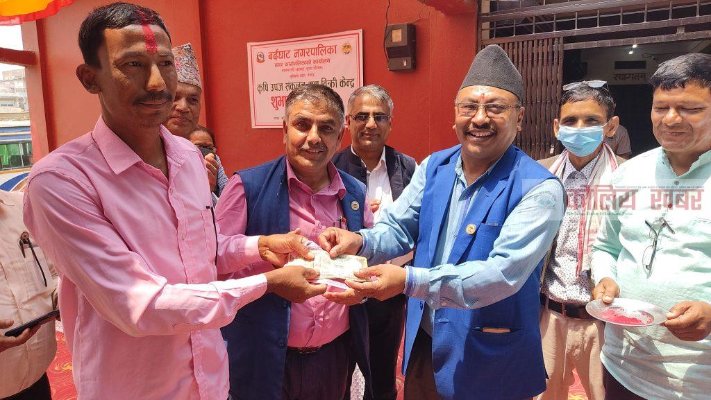 जिल्लाको वर्दघाट नगरपालिकाले सम्भवतः जिल्लामा पहिलो पटक किसानको उत्पादन आफै खरिद गरिदिइने गरि कृषि उपज संकलन तथा विक्रि केन्द्र सञ्चालनमा ल्याएको छ । नगरक्षेत्र भित्र तरकारी फलफूल लगायतका कृषि जन्य उत्पादन गर्ने कृषकहरुलाई राहत पुग्ने गरि सो केन्द्र सञ्चालनमा ल्याएको हो ।